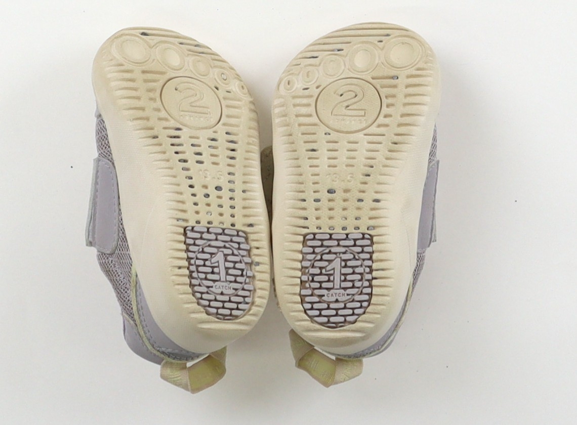 実際のサイズ表記は13.5。つま先に生地剥がれあり。アウトソールに石の挟まり、全体的に薄汚れていますが、まだまだお使いいただけます。