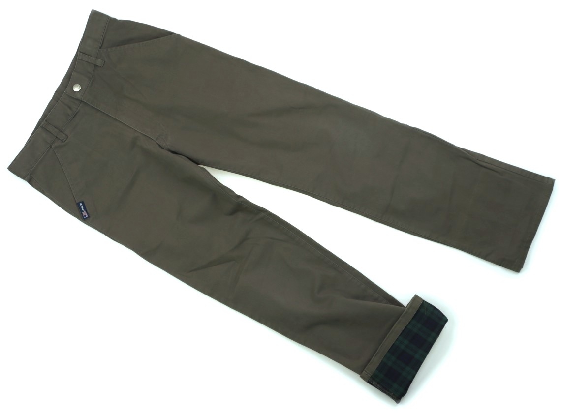 スムース素材。前ファスナー開きで、ウエストにはサイズ調整ゴムが付いています。やや色褪せ・洗いざらし感があります。