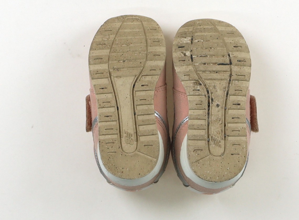 実際のサイズ表記は15cmです。マジックテープ留め。全体に薄汚れ、踵に擦れ、つま先にややソール剥がれ、靴裏に小石の挟まりが見受けられます。外遊び用としていかがでしょうか?