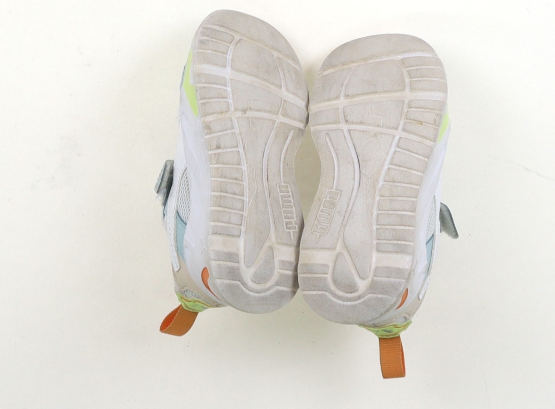 実際のサイズ表記は14.5。アウトソールが若干すり減っています。全体的に薄汚れていますが、まだまだお使いいただけます。