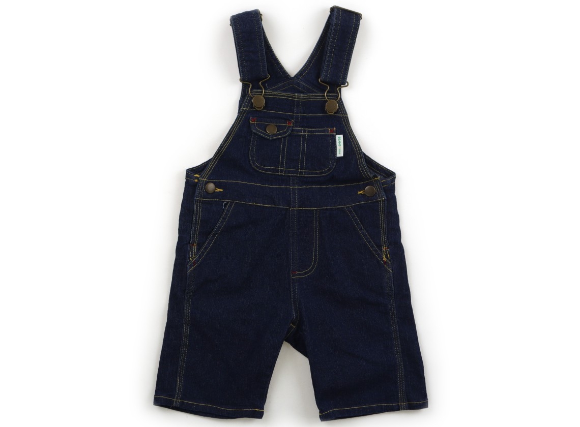 9-12/80cmサイズ表記。ダンガリー生地で、肩紐の調節が可能です。全体に色褪せ・黄ばみ、胸元に茶色いシミあり。