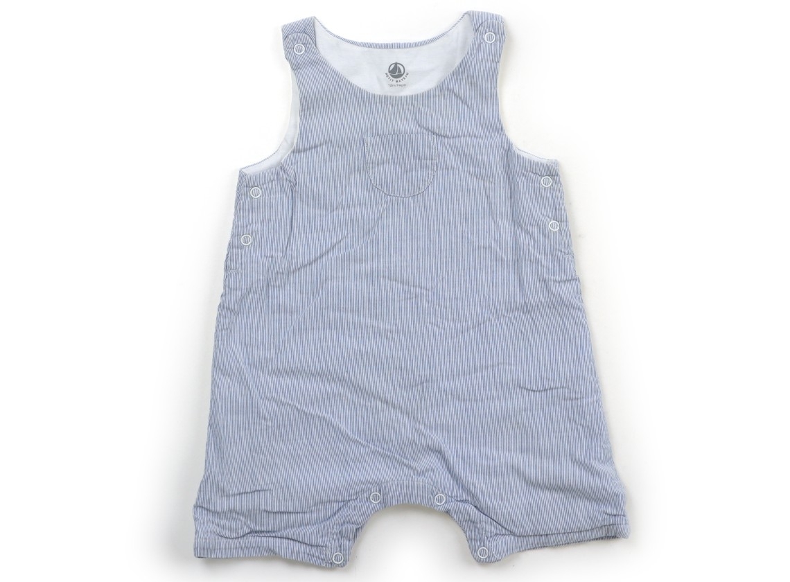 実際のサイズ表記はS70-80。薄手のデニム地、股下スナップ付き。肩紐の調節が可能です。全体に洗いざらし感ありますが、まだまだお使いいただけそうです。
