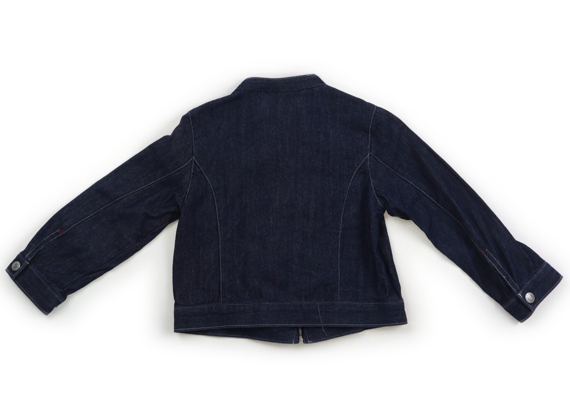 前ファスナー開き。衿まわり、ヨレ感があります。デニム特有の色褪せあり。綿100%。使用感ありますが、まだまだ活躍してくれそうです。