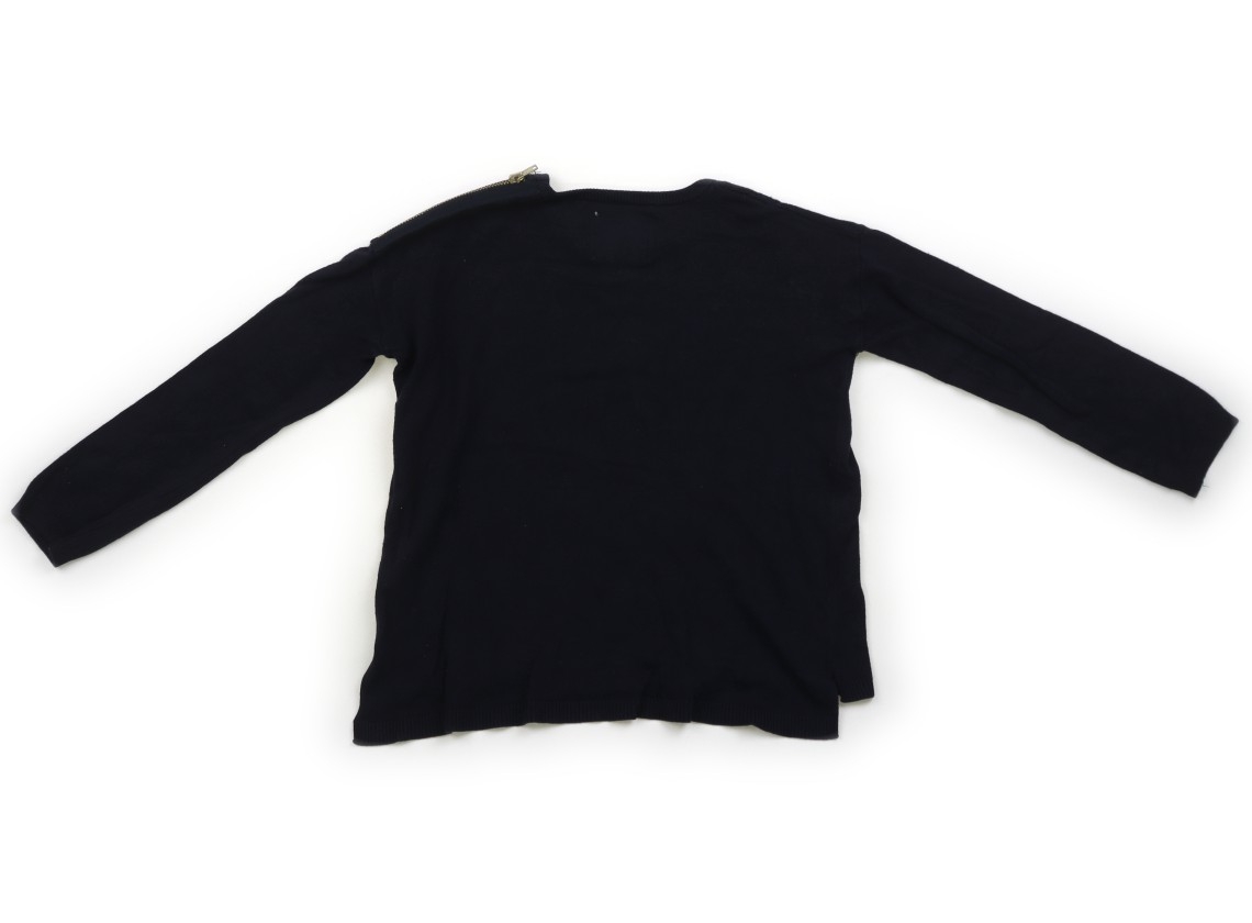 実際のサイズ表記は4-5/110cmです。薄手ニットです。全体に毛羽立ちがあります。裾にヨレあり。肩ファスナーは飾りです。