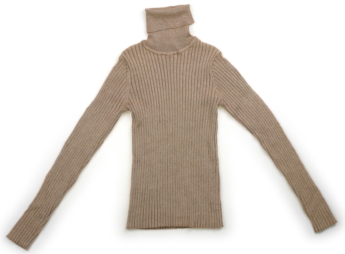 実際のサイズ表記は152cmです。品質タグが切られているので品質は不明です。ゴールドラメ糸の入ったリブニットです。脇と左袖に糸の飛び出しがありますが、目立つ汚れはありません。