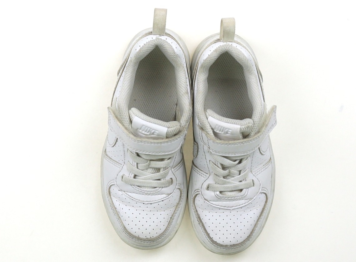 実際のサイズ表記は16.5cm。マジックテープ着脱。甲部分にシワあり。全体的に使用感があり汚れていますが、洗い替え用にいかがでしょうか。
