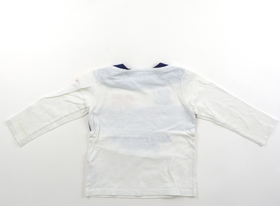 両肩スナップボタン付き。薄いシミや汚れが複数見られ、全体的に毛羽立ちがあります。