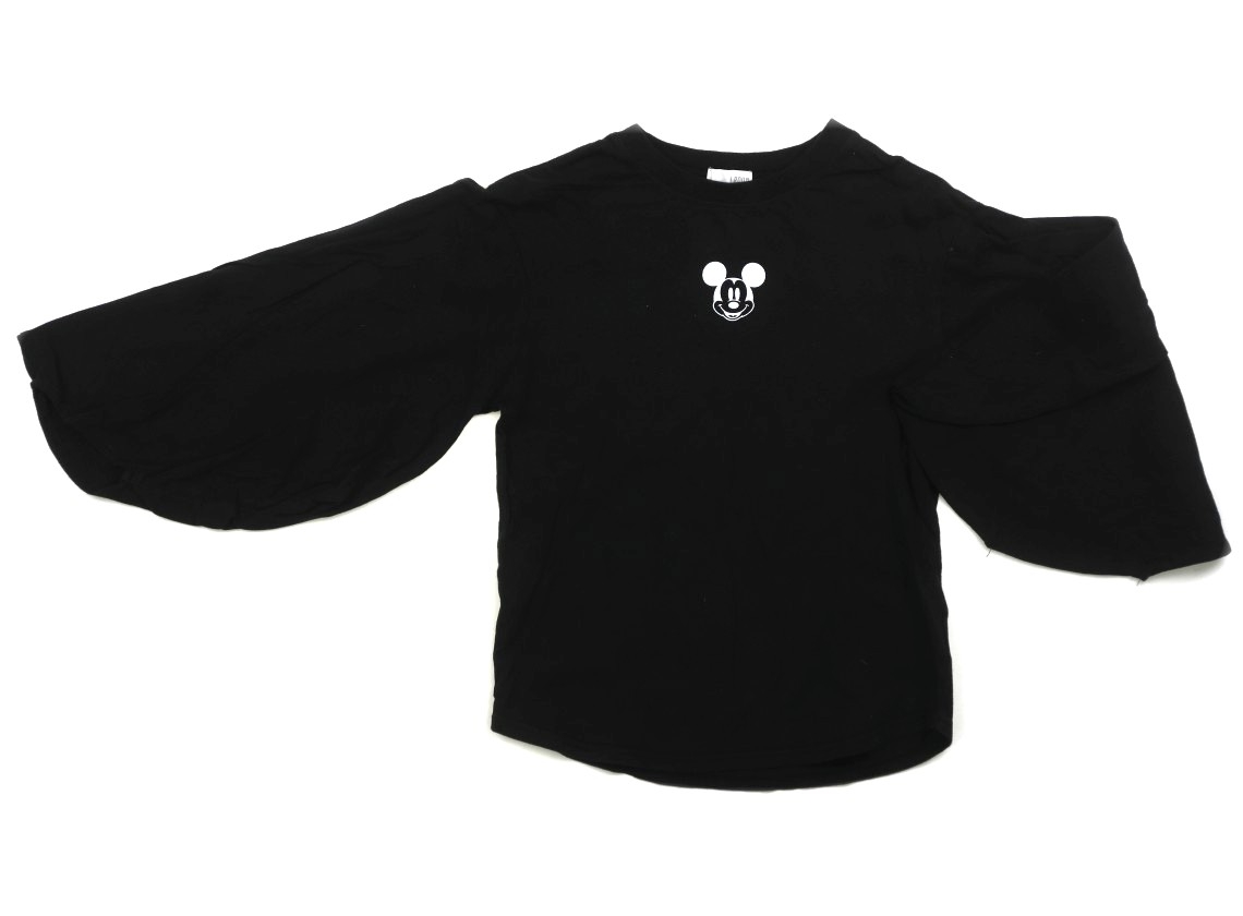 ディズニーコラボ商品です。全体的にホコリ付着がありますが、まだまだ普段着として活躍してくれそうです。ドルマンスリーブの様なデザインです。実際のサイズ表記はLです。